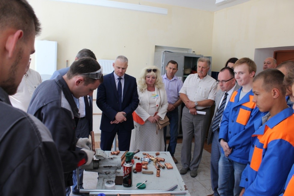 На фото в центре: Голубовский В.Н., ректор Республиканского института профессионального образования при посещении центра компетенций