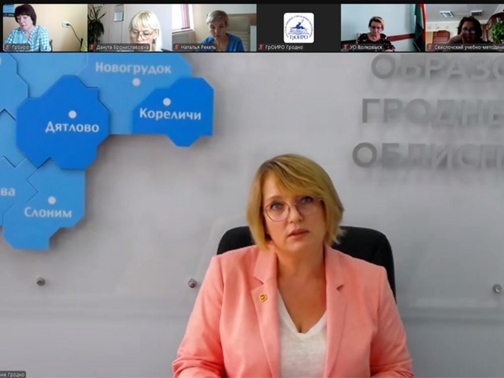 С приветственным словом к участникам совещания обратилась Анжелика Кухта, главный специалист отдела общего среднего и дошкольного образования главного управления образования Гродненского облисполкома. В своем выступлении она также обозначила основные тенденции и перспективы развития системы дошкольного образования в следующем учебном году.