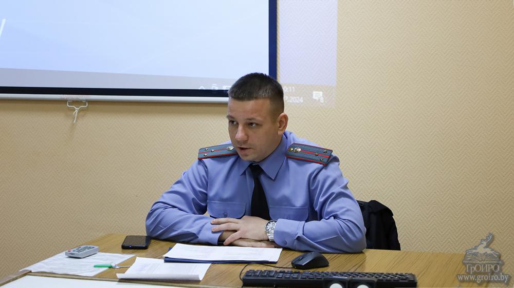 04.12.2024На встречу с представителем Госавтоинспекции в Гродненский институт развития образования на этот раз пригласили руководителей по военно-патриотическому воспитанию учреждений образования. Педагоги нередко организуют внеклассную деятельность: вместе с учащимися посещают воинские части, музеи, мемориальные комплексы и памятники. А потому для них как никогда важно организовать безопасное перемещение по городу. И научить этому детей.