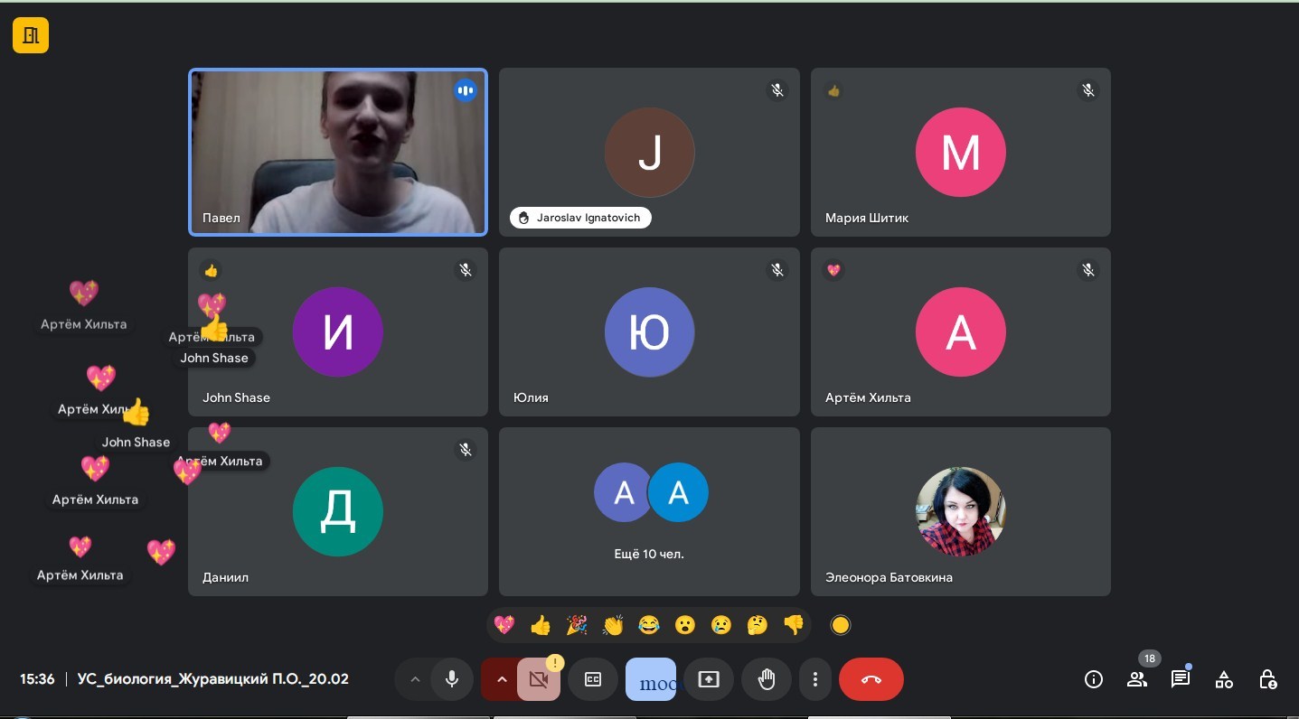 21.02.2025В рамках проведения учебных сборов по химии состоялась уникальная онлайн-встреча, собравшая лучших из лучших – победителей III этапа олимпиады по биологии и их педагогов. К онлайн-встрече присоединился Павел Журавицкий, студент 4 курса биологического факультета Белорусского государственного университета, обладатель премии специального фонда Президента Республики Беларусь по социальной поддержке одарённых учащихся и студентов, который не раз становился победителем заключительного этапа олимпиады по биологии.