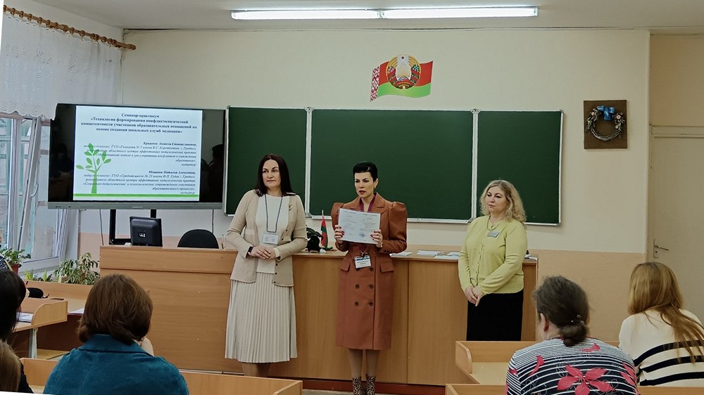 СЕМИНАР-ПРАКТИКУМ НА ТЕМУ «ТЕХНОЛОГИЯ ФОРМИРОВАНИЯ КОНФЛИКТОЛОГИЧЕСКОЙ КОМПЕТЕНТНОСТИ УЧАСТНИКОВ ОБРАЗОВАТЕЛЬНЫХ ОТНОШЕНИЙ НА ОСНОВЕ СОЗДАНИЯ ШКОЛЬНЫХ СЛУЖБ МЕДИАЦИИ» СОСТОЯЛСЯ В ГРОДНО