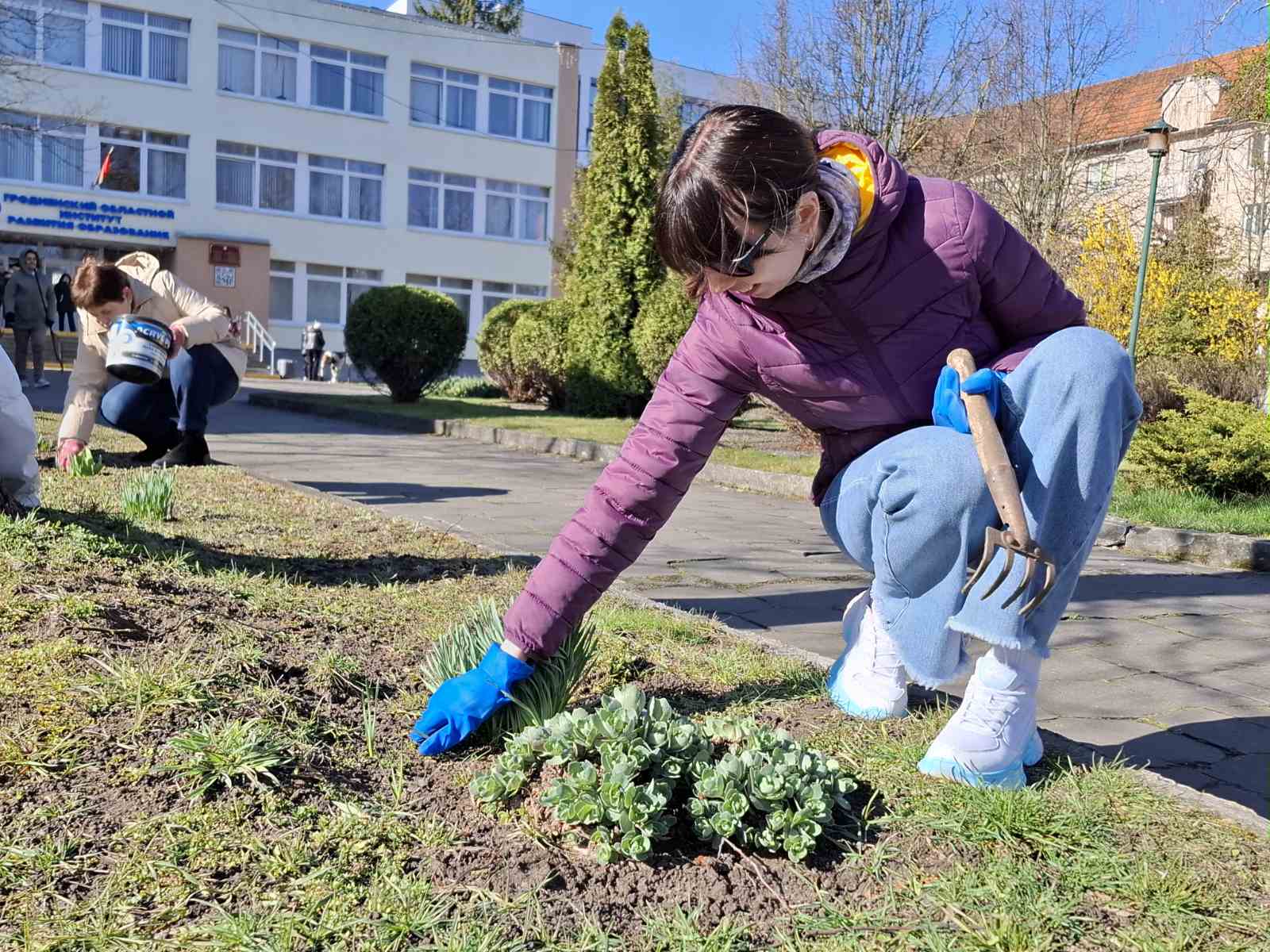 12.04.2025В Год благоустройства страны весь коллектив Гродненского областного института развития образования принялся за благоустройство территории учреждения, вооружившись граблями, мешками для мусора и мётлами.