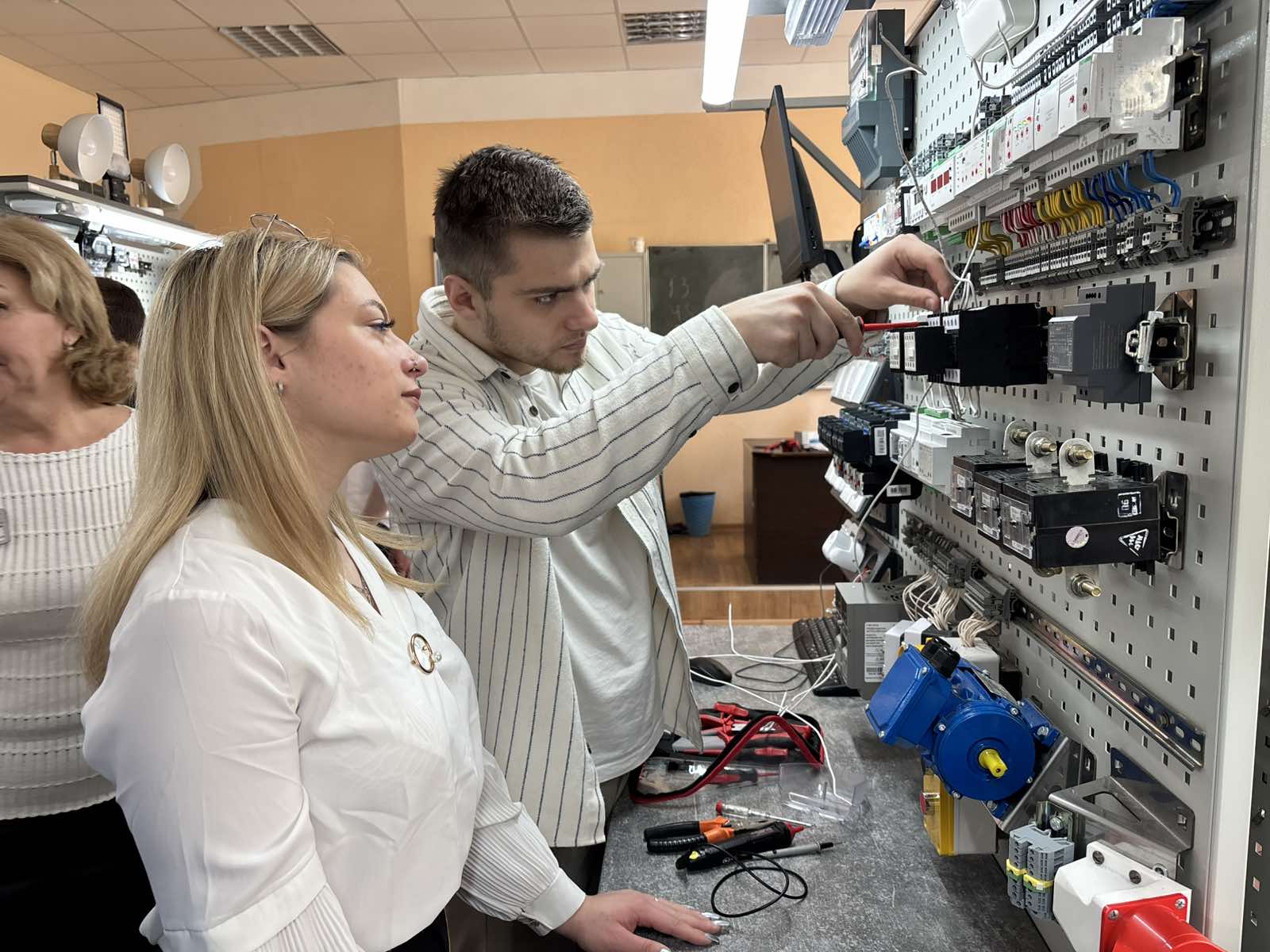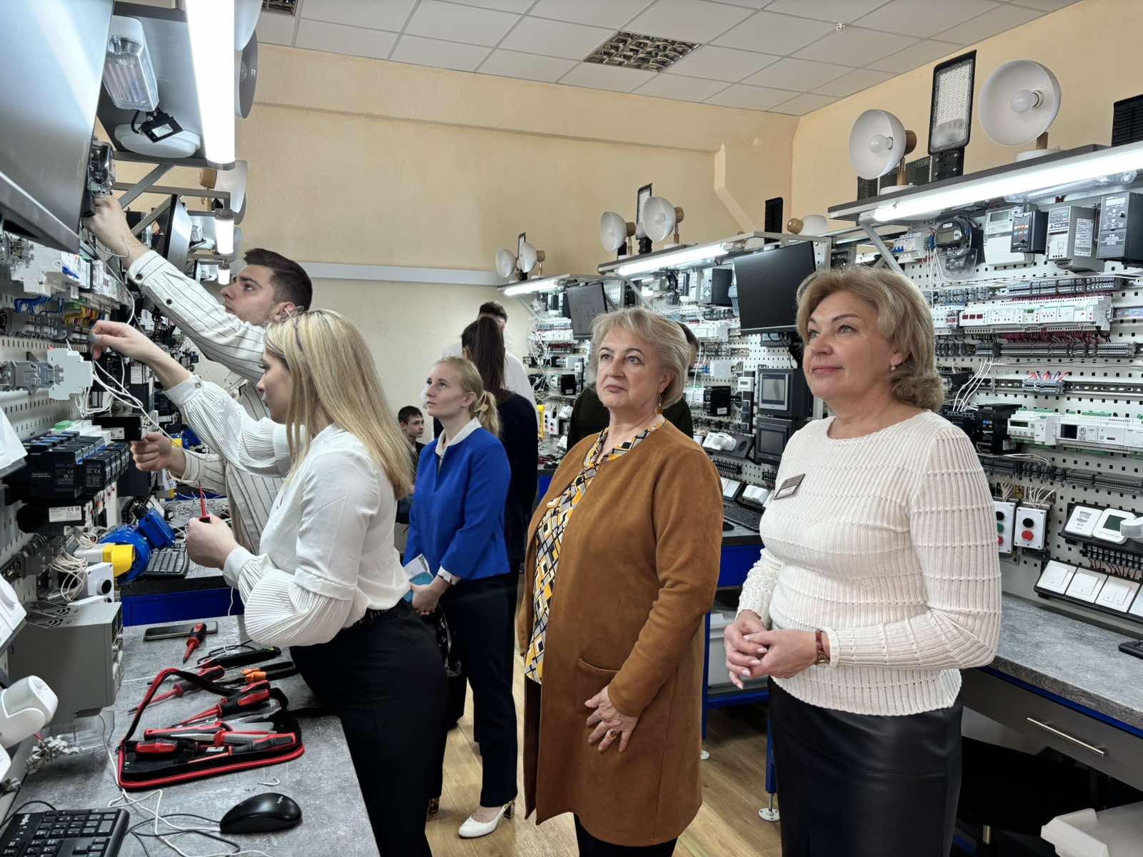 В рамках мероприятия начинающим мастерам производственного обучения со всего региона представители колледжа имени Ивана Счастного рассказали об особенностях организации подготовки квалифицированных кадров по специальностям в области электротехники и энергетики в условиях центра компетенций, а также провели экскурсию по мастерским и лабораториям учреждения.