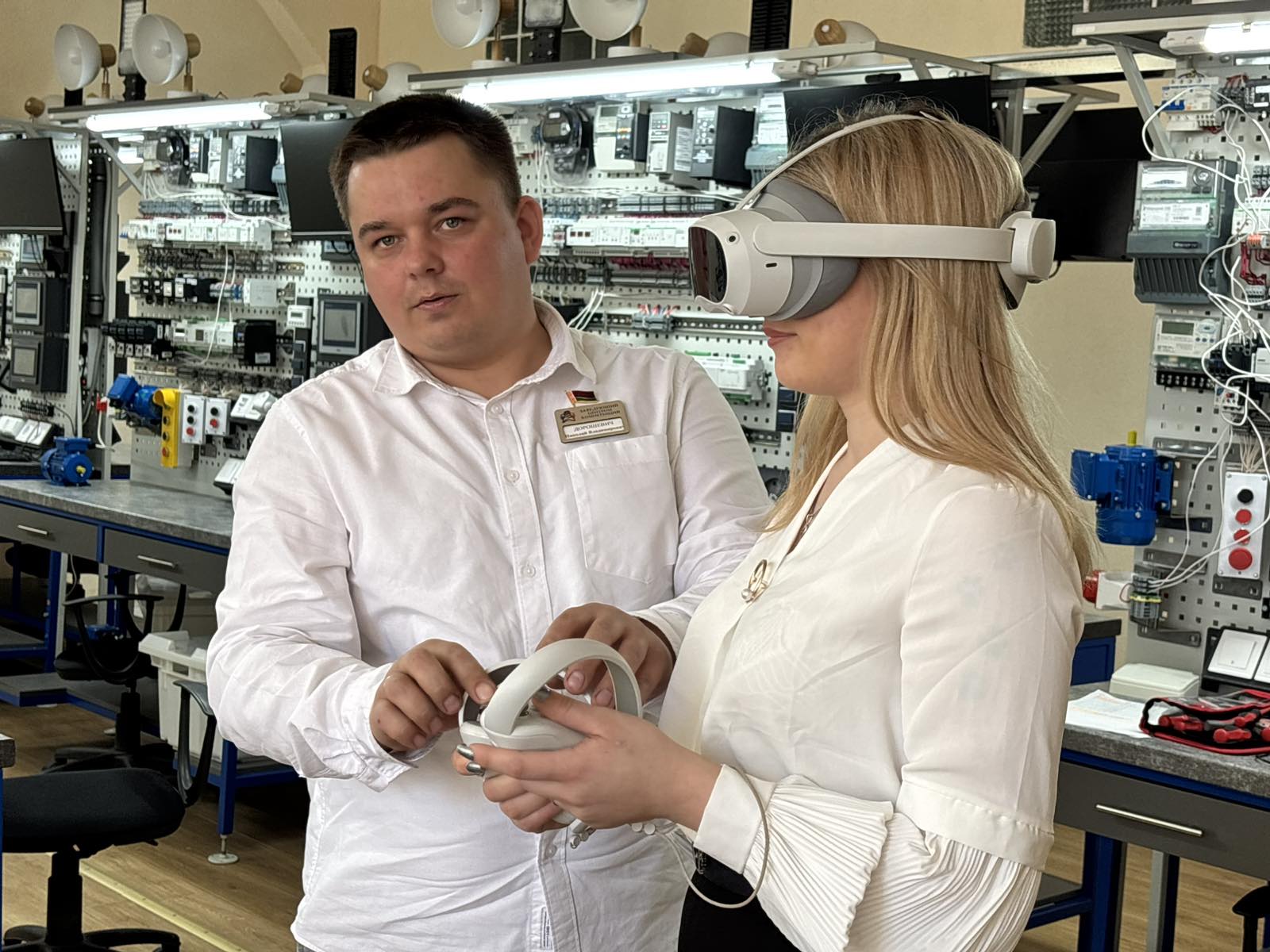 В рамках практикума молодые педагоги подробно изучили тему «Использование возможностей современного промышленного электротехнического оборудования в образовательном процессе», а во время тематического мастер-класса уже опытные преподаватели рассказали о возможностях применения VR-технологий при организации образовательного процесса для группы специальностей «Электротехника и энергетика».