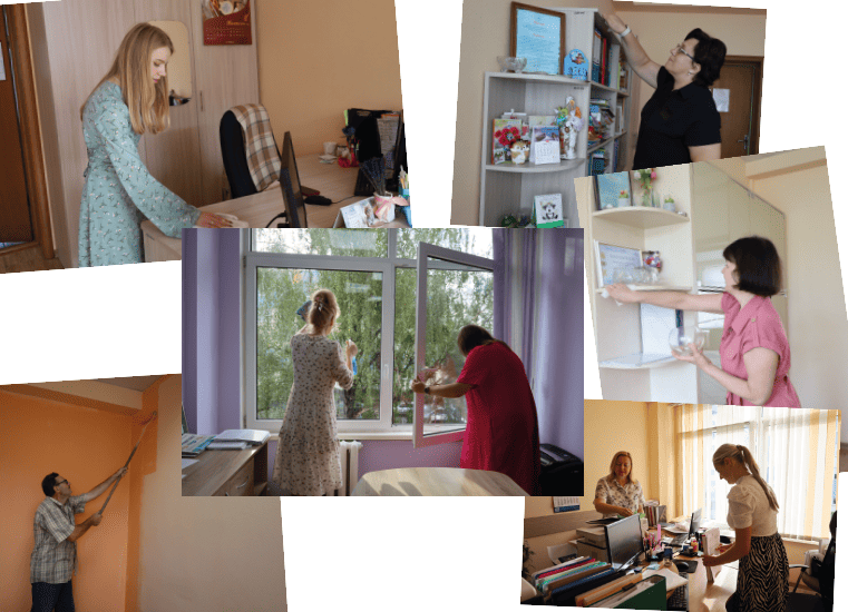 В мероприятии приняли участие все сотрудники института: администрация, методисты, специалисты и технический персонал. Совместными усилиями были приведены в порядок рабочие кабинеты.