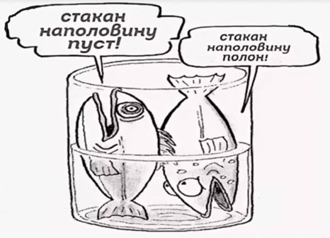 Подумайте, как Вы отнесетесь к фразе: «Данный метод или прием на уроке работает в 90% случаях» или «В 10% случаях данный метод или прием не работает на уроке». Какова Ваша реакция на эти два утверждения? Речь идет про одни те же факты, но восприятие этих фактов разное!