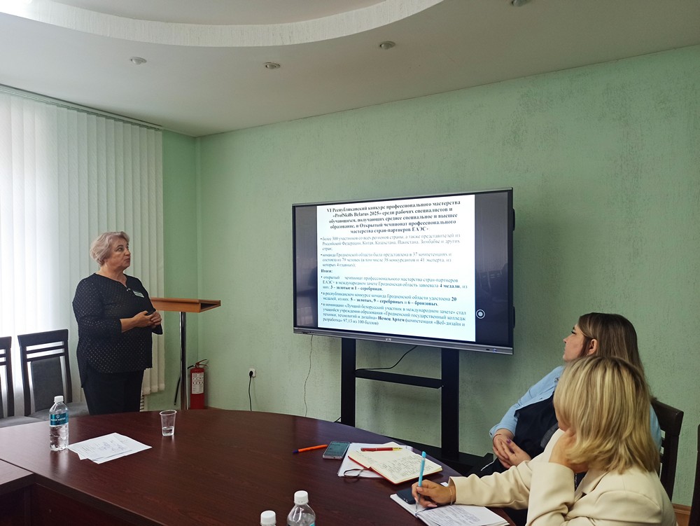 12.09.202512 сентября 2025 года управление профессионально-технического, среднего специального образования ГУО «Гродненский областной институт развития образования» организовало совещание для методистов и заведующих центрами компетенций учреждений среднего специального образования.