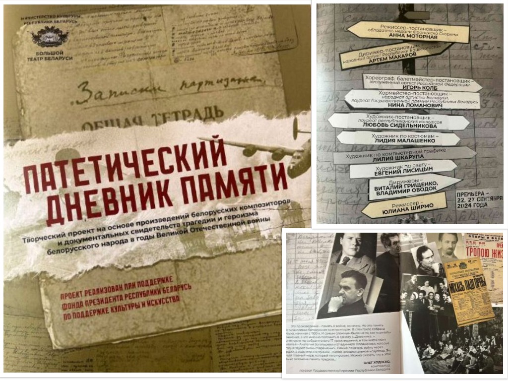 Патетический дневник памяти – это творческий проект на основе произведений белорусских композиторов и документальных свидетельств трагедии и героизма белорусского народа в годы Великой Отечественной войны. Главный посыл этого монументального произведения: «Мы не забудем никогда! Мы помним!».