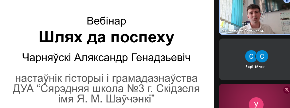 20.10.202520 октября учащиеся школ Гродненской области приняли участие в вебинаре «Путь к успеху». Лектором мероприятия стал Александр Геннадьевич Чернявский, учитель истории и обществоведения ГУО «Средняя школа № 3 г. Скиделя имени Е.М. Шевченко», молодой специалист и ученый. Мероприятие было организовано методистами управления по сопровождению работы с детьми, достигшими высоких показателей в учебной и общественной деятельности. Онлайн-встреча собрала не только старшеклассников, но и учителей, заинтересованных в профессиональном ориентировании своих учеников.