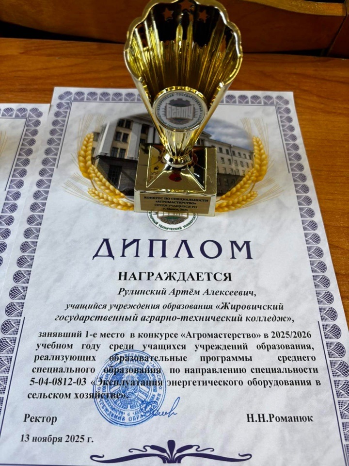 Рулинский Артём, учащийся УО «Жировичский государственный аграрно-технический колледж» – диплом I степени;
