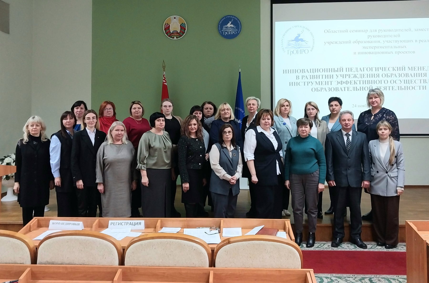 24.11.2025На базе Гродненского областного института развития образования 24 ноября 2025 года состоялся семинар «Инновационный педагогический менеджмент в развитии учреждения образования как инструмент эффективного осуществления образовательной деятельности». Участниками мероприятия стали методисты, специалисты, курирующие экспериментальную и инновационную деятельность, руководители, заместители руководителя учреждений образования, участвующих в реализации экспериментальных и инновационных проектов в 2025/2026 учебном году.