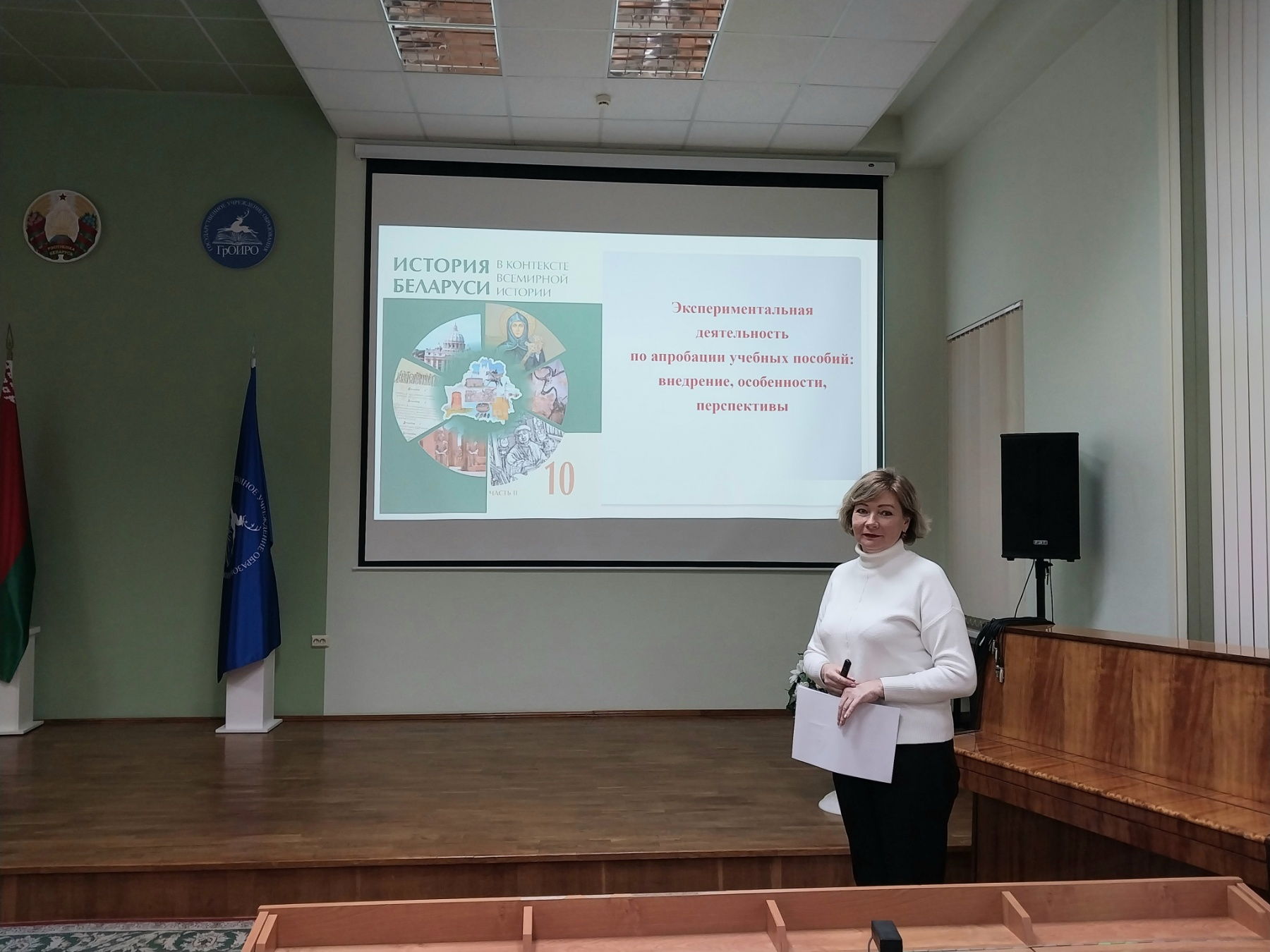 Елена Викентьевна Радомская, учитель ГУО «Гимназия № 1 г. Дятлово» рассказала о научно-методическом сопровождении апробации новых учебных материалов, о том, как грамотно выстроить работу на каждом этапе эксперимента, чтобы получить объективные и значимые результаты, которые будут востребованы по всей стране.