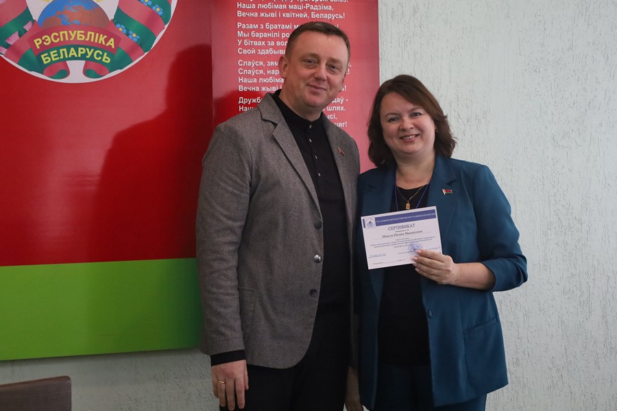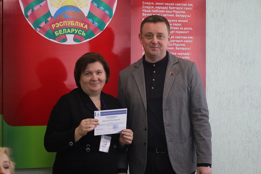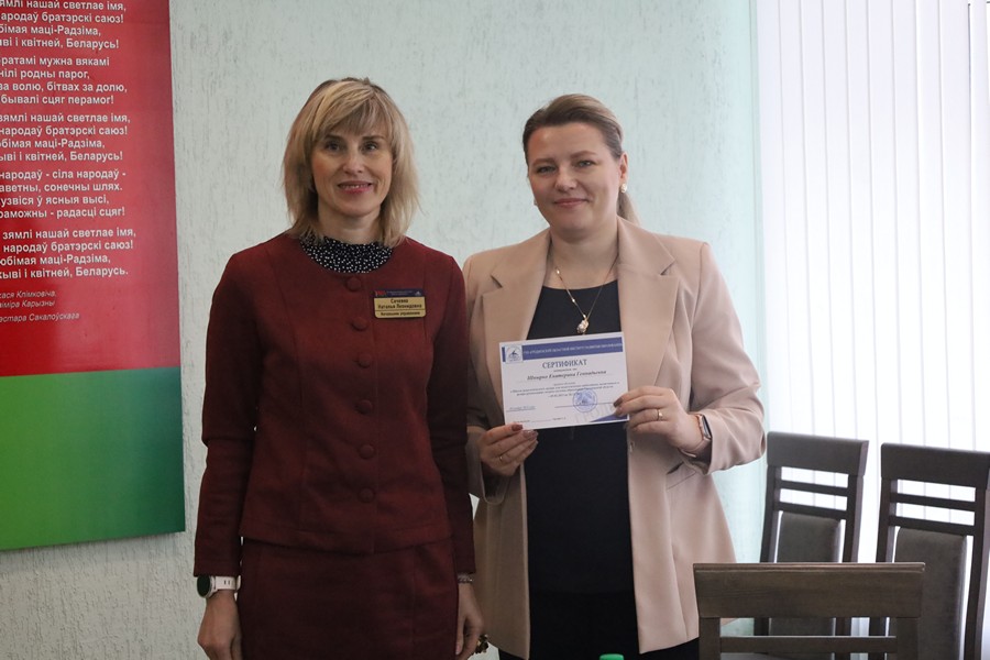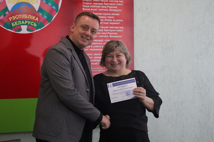 Торжественное вручение сертификатов слушателям состоялось в читальном зале института. С напутственным словом к будущим руководителям выступил директор ГУО «Гимназия № 2 г. Волковыска» Личик Александр Анатольевич, сделав акцент на человекоцентрированной модели поведения руководителя.