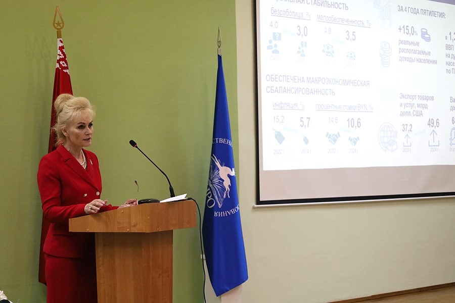 Ректор института, кандидат педагогических наук, доцент Светлана Антоновна Сергейко как делегат Всебелорусского народного собрания представила Программу социально-экономического развития Республики Беларусь на предстоящую пятилетку.