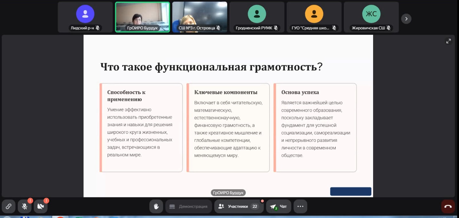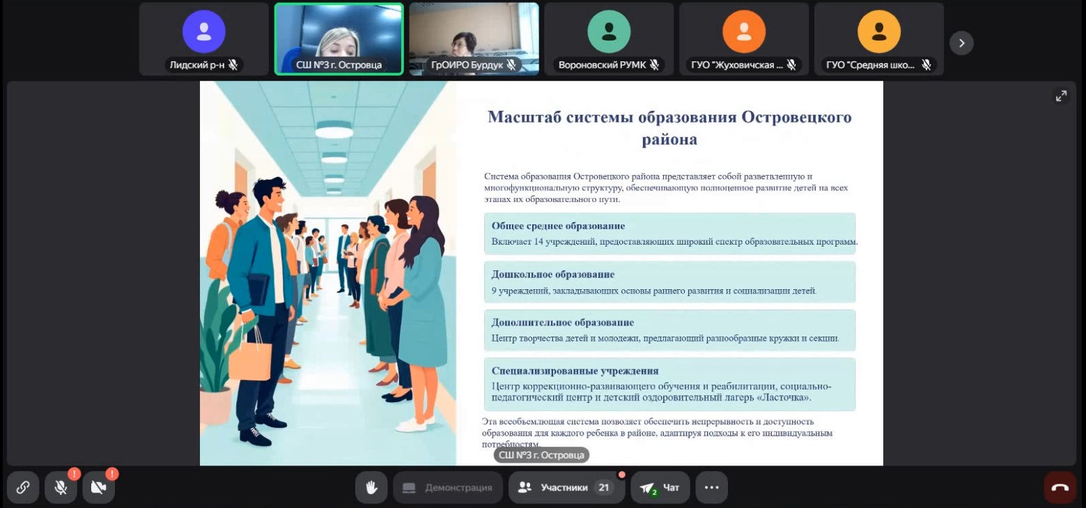Семинар в очно-дистанционном формате организован заместителем начальника центра общего среднего образования Бурдук Татьяной Эдмундовной совместно с Островецким учебно-методическим кабинетом.