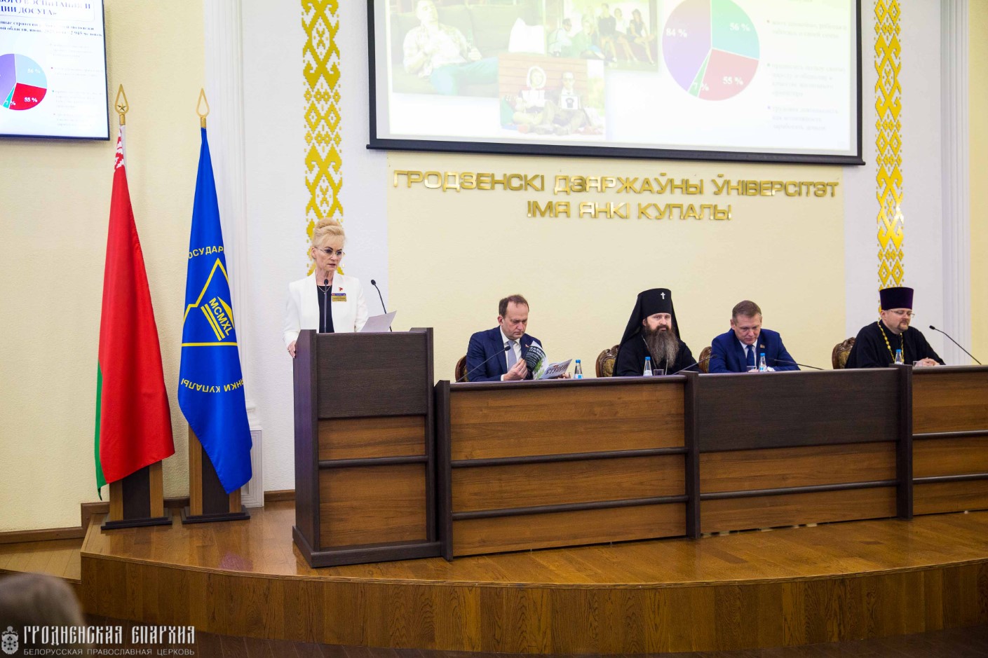 11.12.202511 декабря 2025 года в Гродно начали работу XIV Коложские областные открытые научно-образовательные чтения «Просвещение и нравственность: вызовы времени и воспитание личности». В рамках программы первого дня на базе Гродненского государственного университета имени Янки Купалы прошло пленарное заседание, на котором с докладом «Духовно-нравственные основы белорусского общества: вызовы современности и консолидация усилий системы образования и Белорусской Православной Церкви» выступила кандидат педагогических наук, доцент, ректор Гродненского областного института развития образования Светлана Антоновна Сергейко.