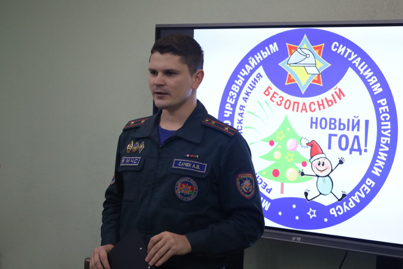 Центральной темой выступления стала республиканская акция «Безопасный Новый год». Специалист МЧС разъяснил основные правила установки и украшения новогодних елок, которые помогут избежать трагических последствий от возгорания. Отдельное внимание было уделено правилам выбора и использования пиротехнических средств, а также недопустимости их применения детьми без контроля взрослых.
