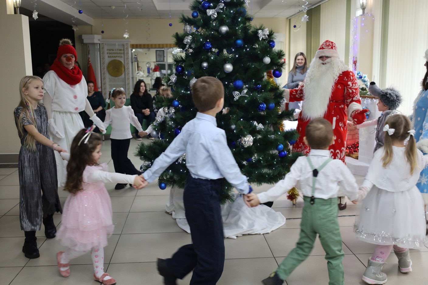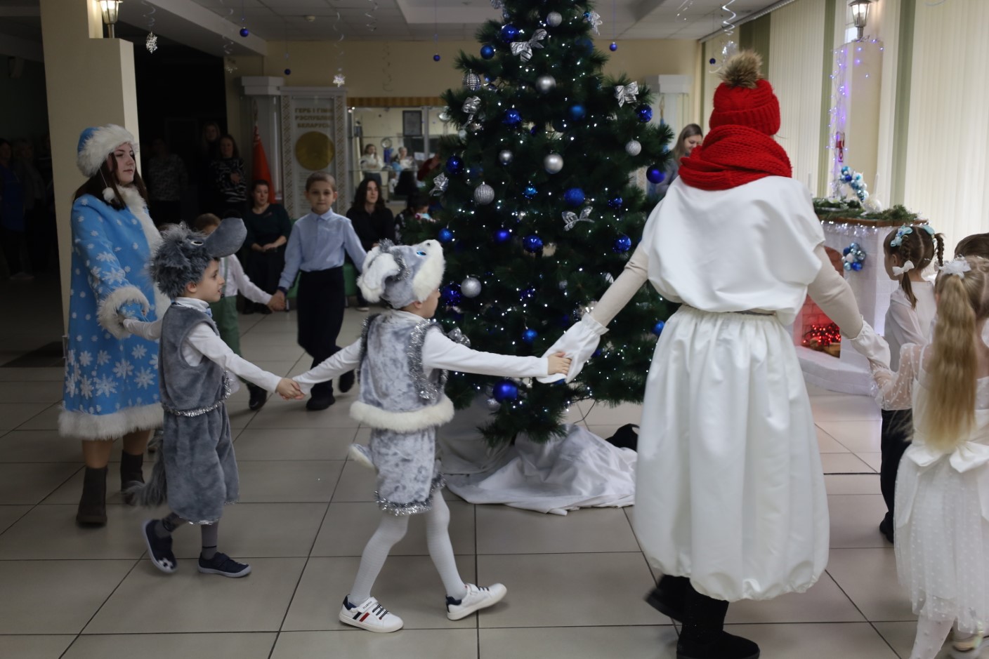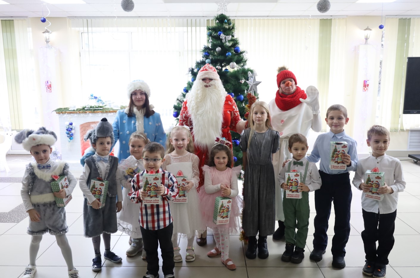 Для ребят была подготовлена праздничная программа с участием сказочных персонажей, играми и хороводами вокруг новогодней ёлки.