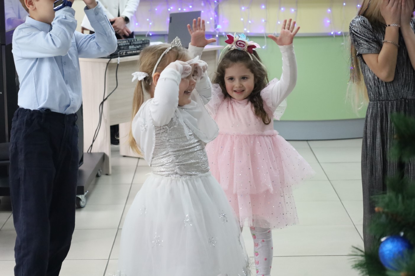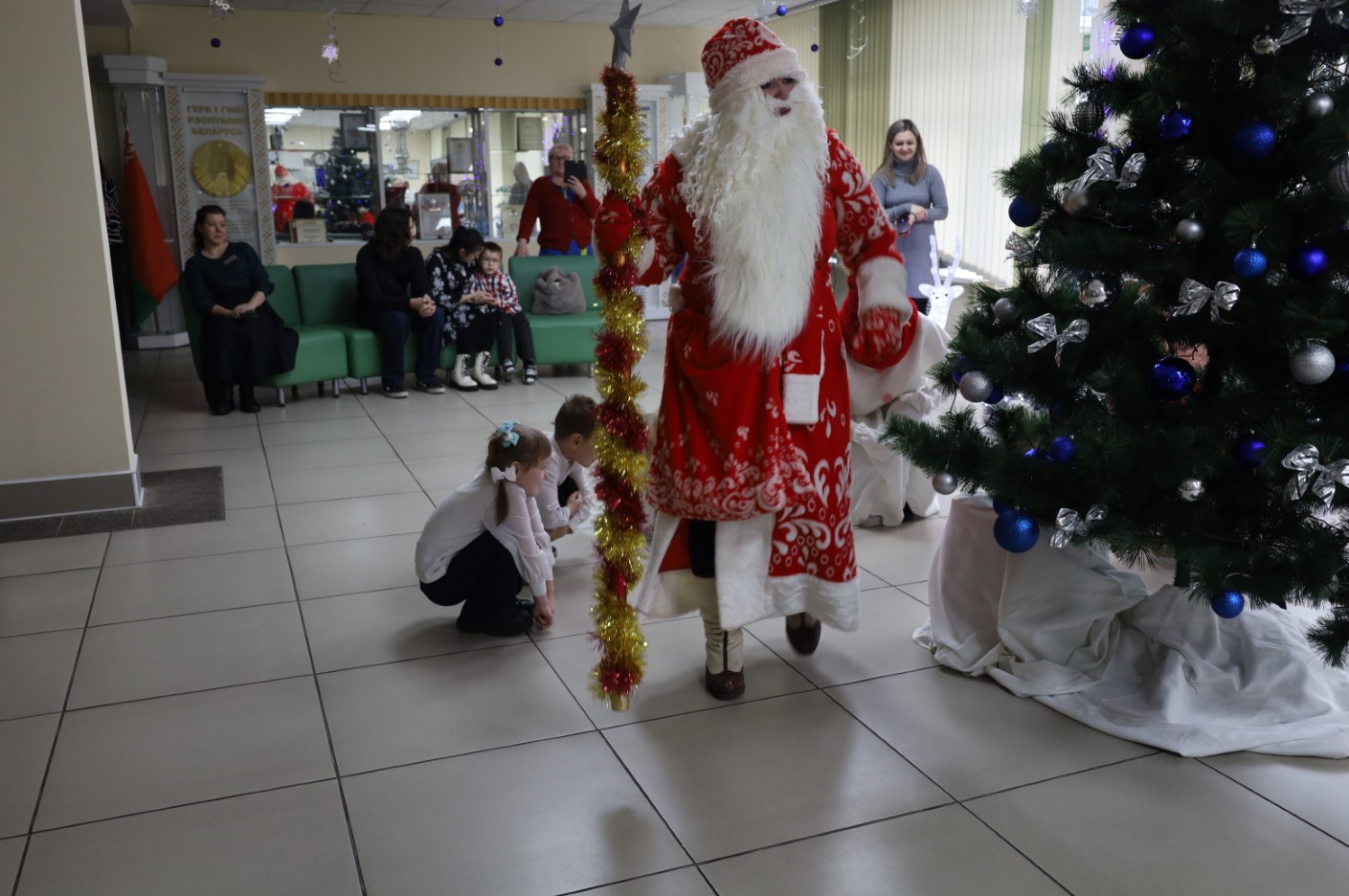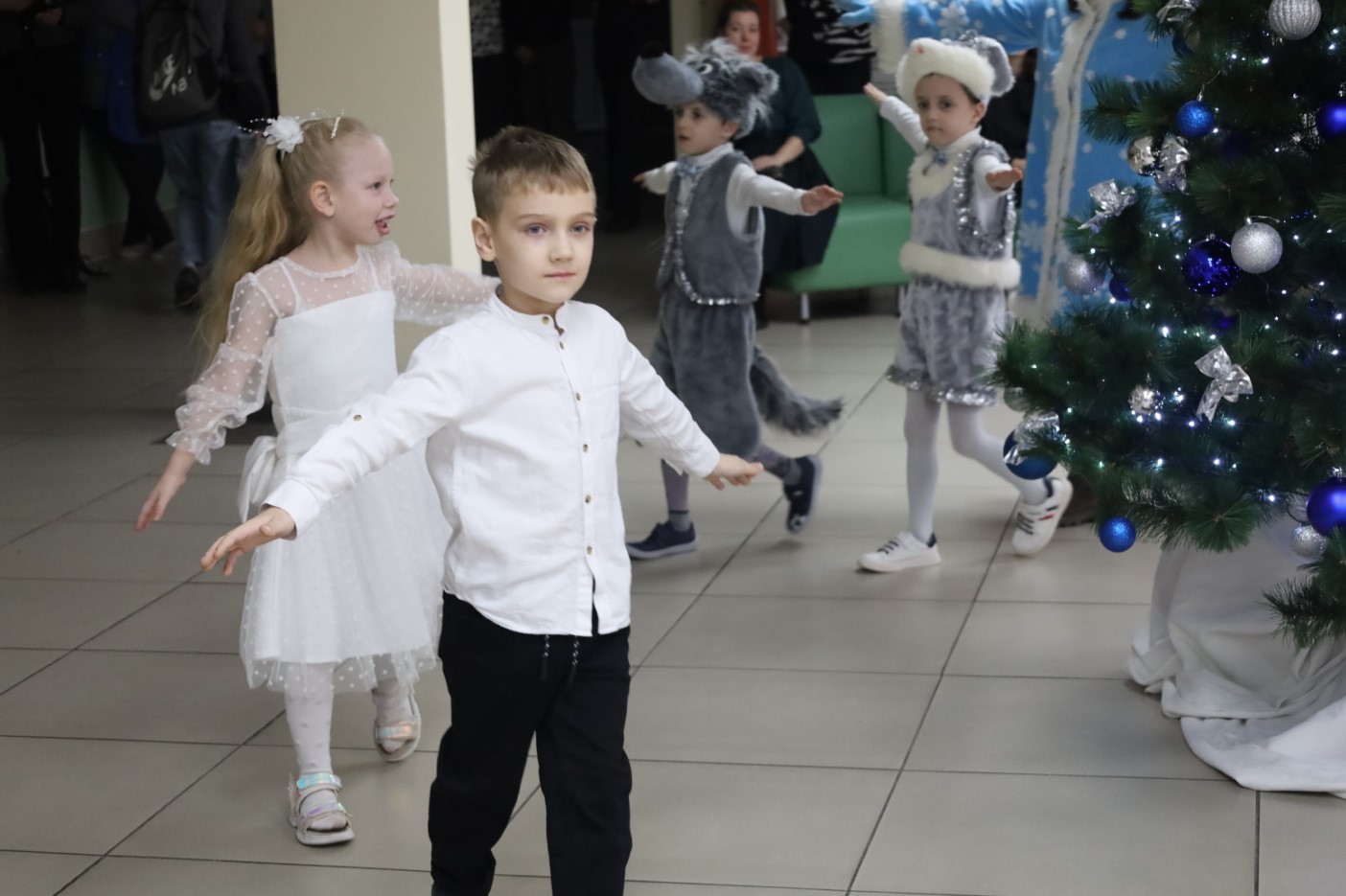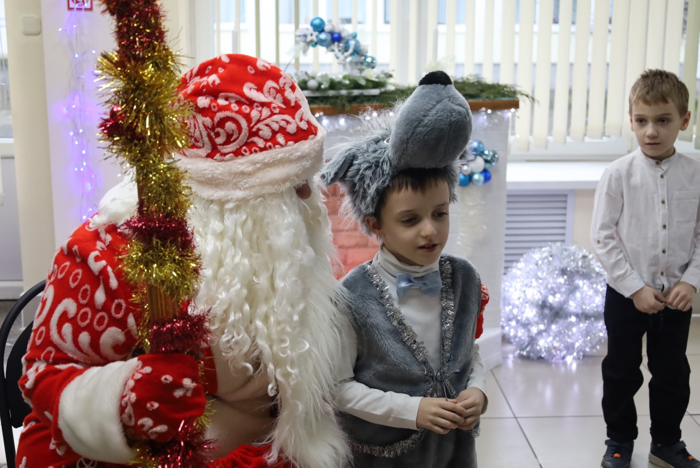Для ребят была подготовлена праздничная программа с участием сказочных персонажей, играми и хороводами вокруг новогодней ёлки.