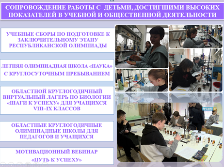 Опыт Гродненской области в данной сфере представила Светлана Станиславовна Шмурей, начальник управления по сопровождению работы с детьми, достигшими высоких показателей в учебной и общественной деятельности. Она отметила, что методистами института создана эффективная система работы с педагогами и учащимися, которая постоянно совершенствуется. Особое внимание уделяется развитию олимпиадной, проектной и исследовательской деятельности, а также активному участию одарённых учащихся в конкурсах, турнирах и олимпиадах областного и республиканского уровней. Результативность работы подтверждается высокими достижениями: на международных олимпиадах учащиеся области завоевали 17 медалей (4 золотых, 8 серебряных и 5 бронзовых).