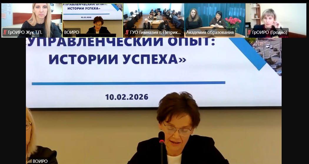 10.02.202610 февраля 2026 года начальник методического управления менеджмента образования Наталья Сачевко, методист управления Татьяна Жук и директора учреждений образования Гродненской области приняли участие в республиканской онлайн-встрече для руководящих работников сферы образования «Управленческий опыт: истории успеха» с целью обмена успешными управленческими практиками и распространения опыта руководителей, достигших высоких результатов.