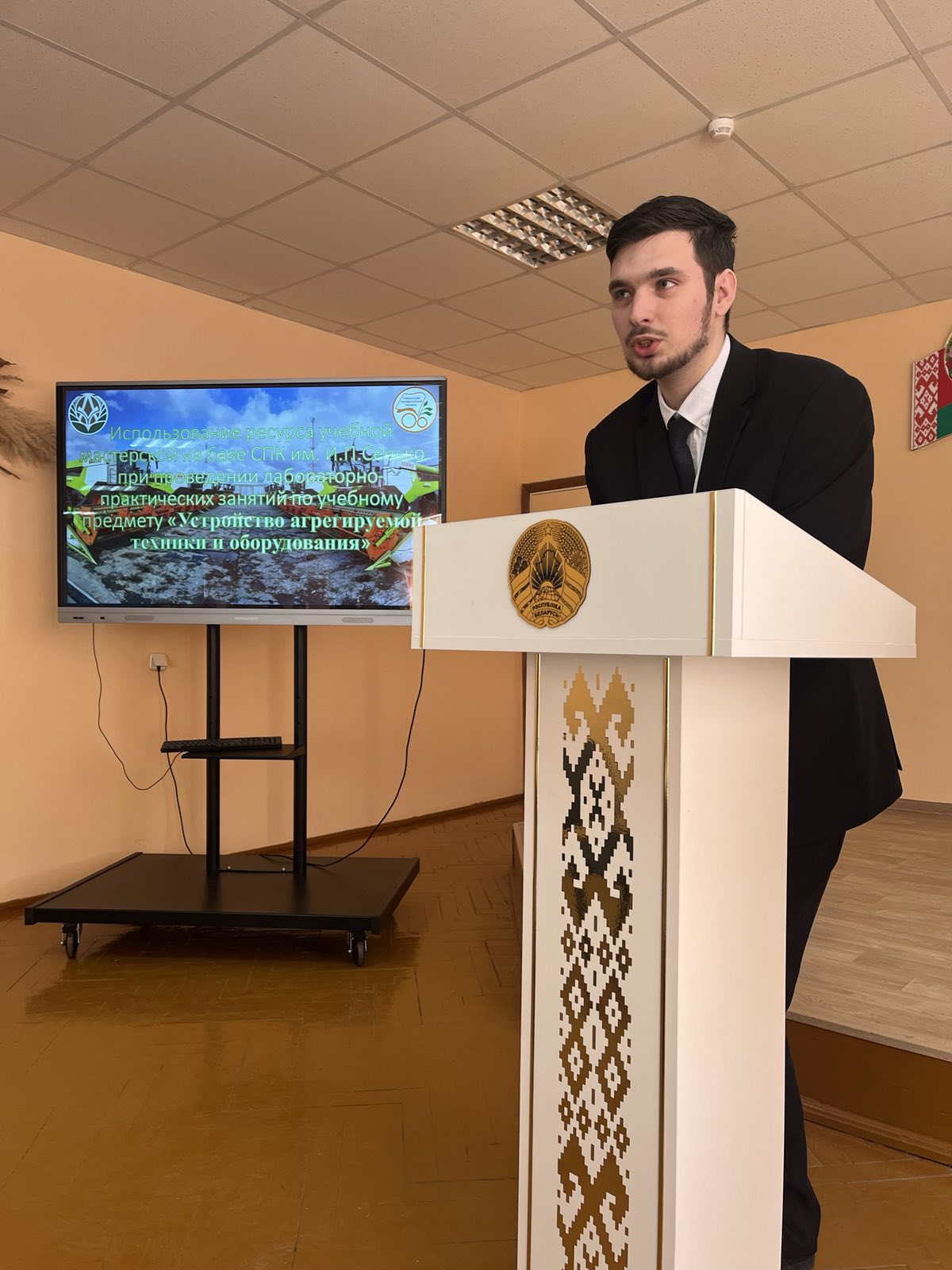 Центральным событием стало посещение открытого учебного занятия по предмету «Устройство колесных тракторов, самоходных машин».