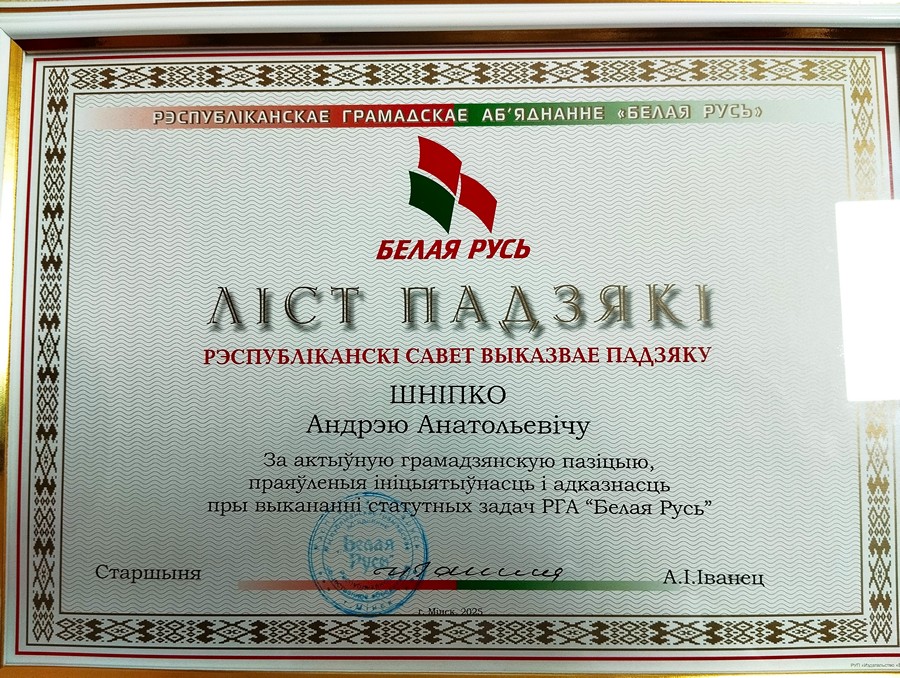 11.03.202611 марта 2026 года председатель первичной организации РОО «Белая Русь» института Андрей Шнипко и заместитель председателя Марина Ерема приняли участие в VIII внеочередной конференции Октябрьской районной организации РОО «Белая Русь» г. Гродно.