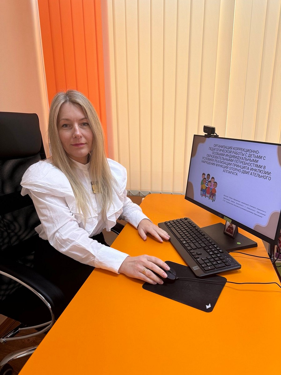 В начале вебинара Эдита Марьяновна Базылюк, заведующий сектором специального образования отдела дошкольного и специального образования, сделала акцент на том, что перед педагогами специального образования определен широкий спектр задач, направленный на развитие, социализацию и преодоление трудностей в обучении и воспитании детей с нарушениями функций опорно-двигательного аппарата.