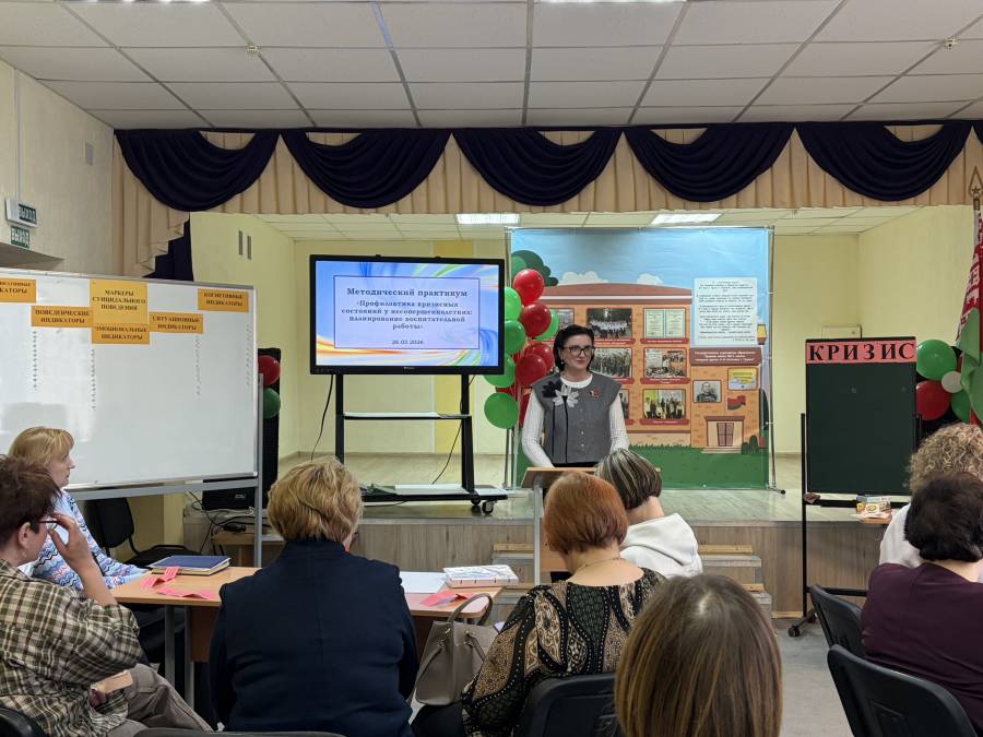 26.03.202626 марта 2026 года сотрудниками центра воспитательной, идеологической, социально-педагогической работы на базе ГУО «Средняя школа № 11 имени генерала армии А.И.Антонова г. Гродно» организован областной методический практикум «Профилактика кризисных состояний у учащихся: планирование воспитательной работы в классном коллективе».