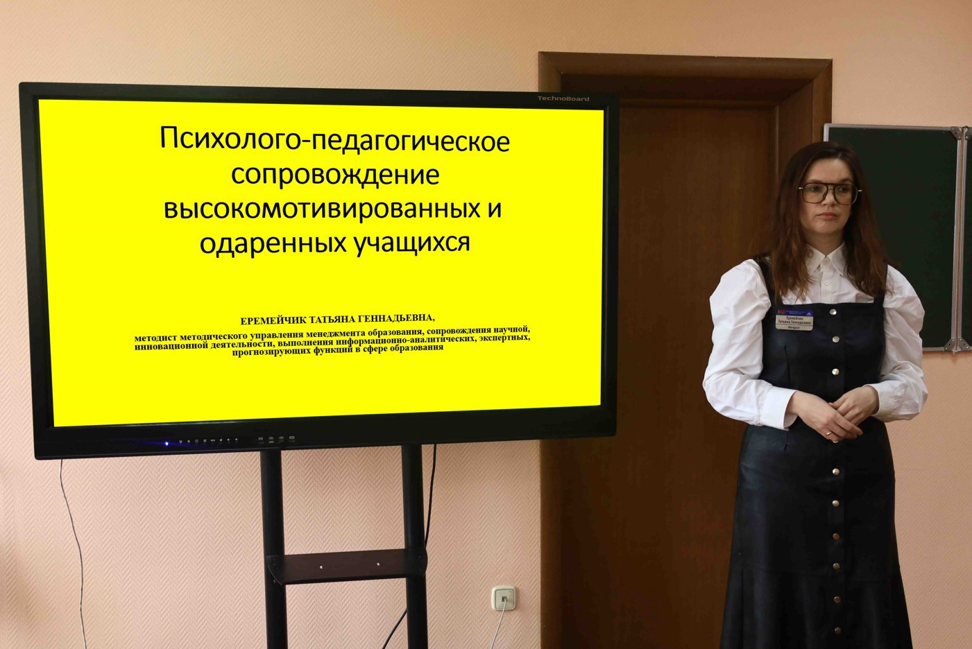 Татьяна Геннадьевна Еремейчик, методист управления, подробно остановилась на психологической сущности феномена одаренности, личностных особенностях таких детей, а также разобрала «психологические ловушки»: страх неудачи, перфекционизм и синдром отличника, обозначив стили педагогического взаимодействия.